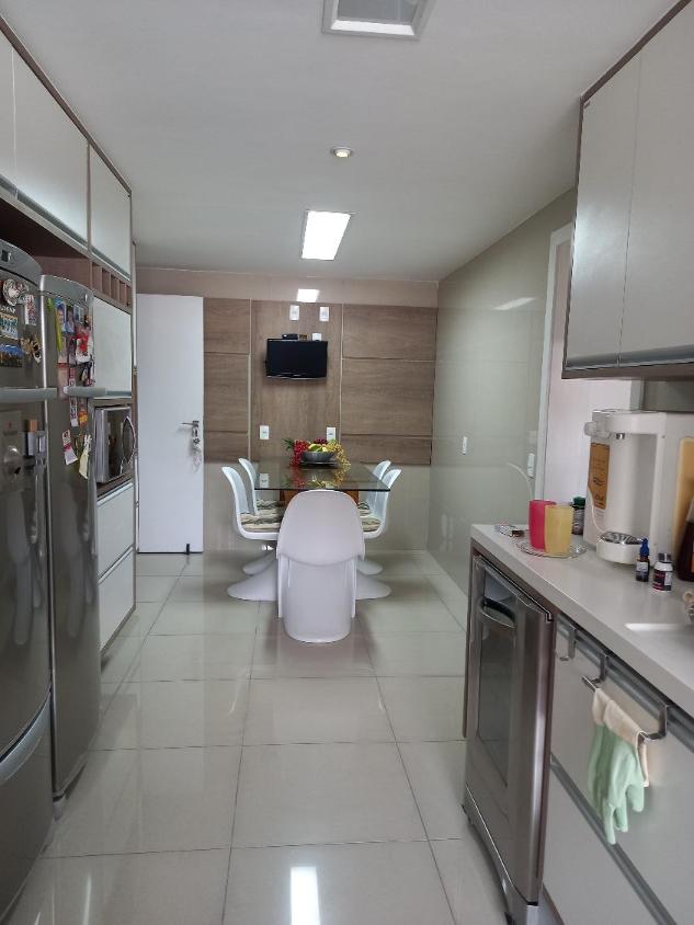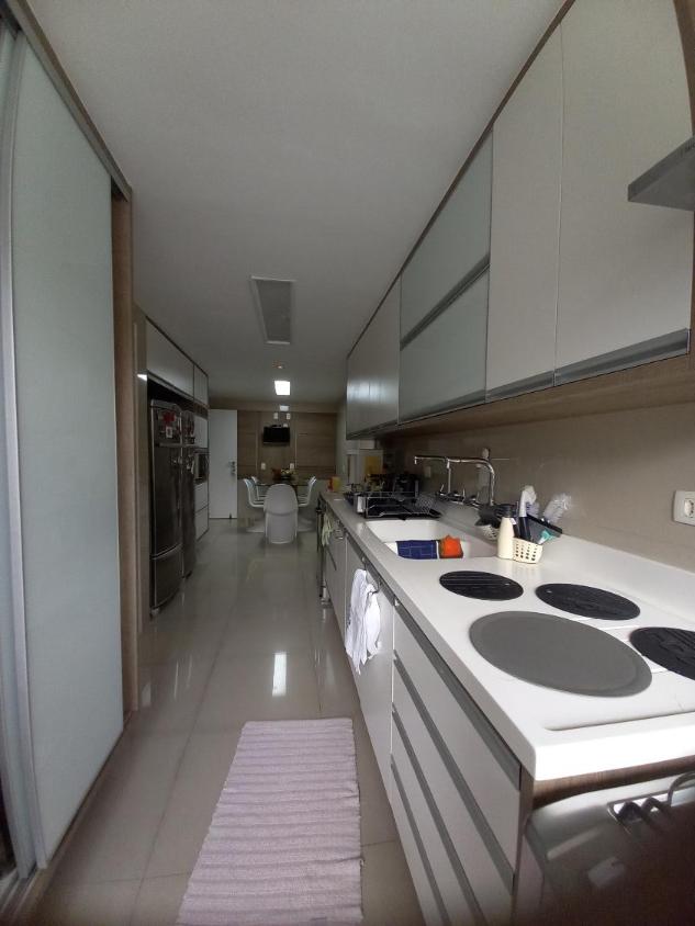HALL DE ENTRADA, SALÃO EM 4 AMBIENTES, TABUA CORRIDA, VARANDÃO COM VISTA MARAVILHOSA, 4 QUARTOS (3 SUITES, SUITE MASTER COM 2 AMPLOS CLOSETS, 2 SUITES COM ARMÁRIOS), COPA COZINHA PLANEJADA COM MARCENARIA FINA, AREA DE SERVIÇO PLANEJADA, DEPENDÊNCIA COMPLETA DE EMPREGADA.